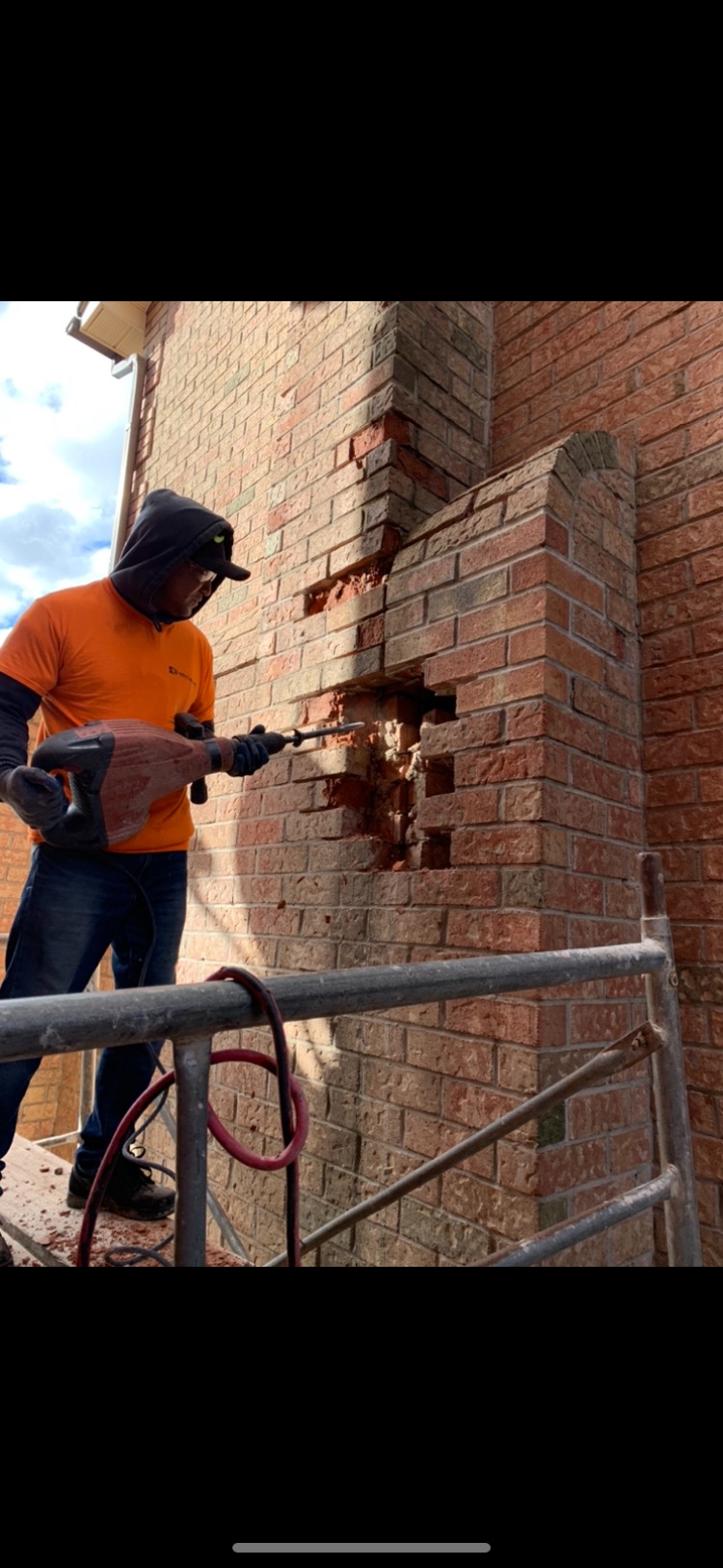 The project included repairing and replacing bricks and mortar around bricks, replacing stones and replacing sealant around windows and along the brick walls