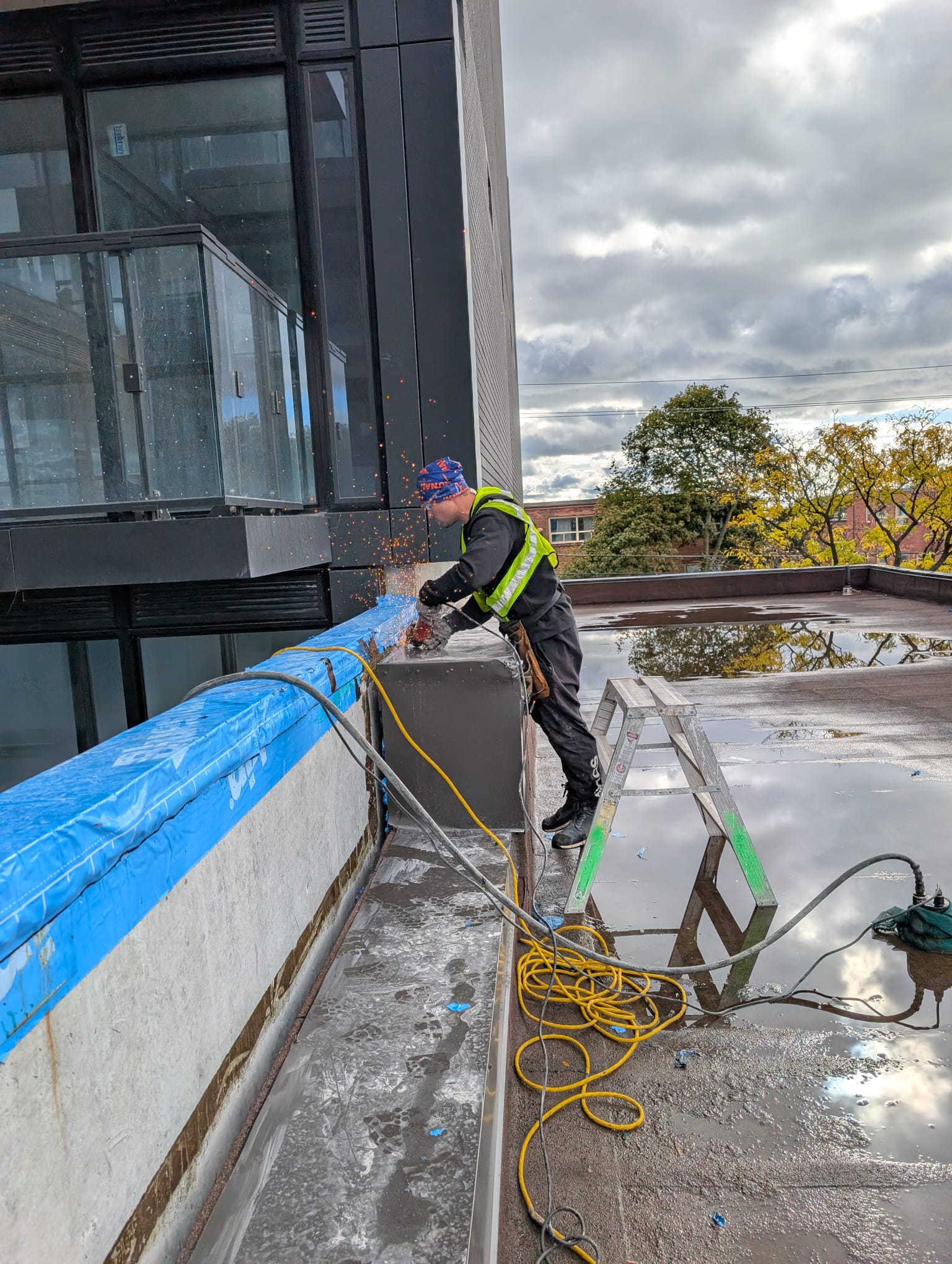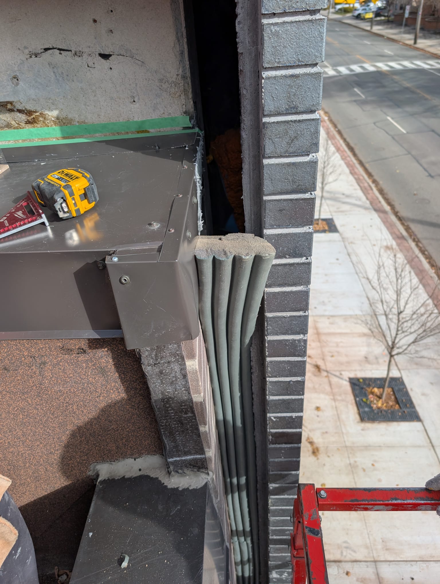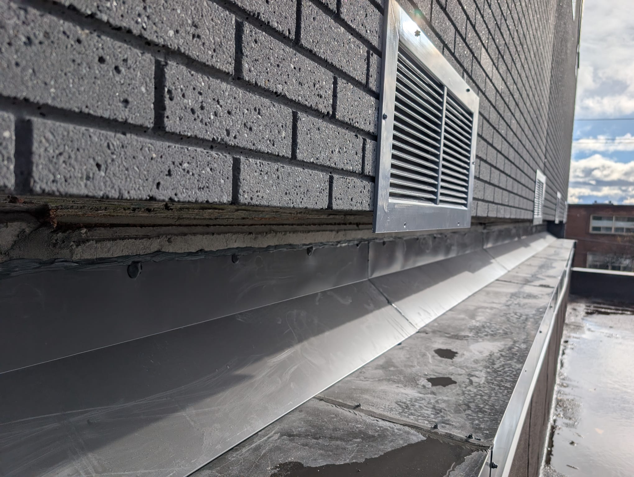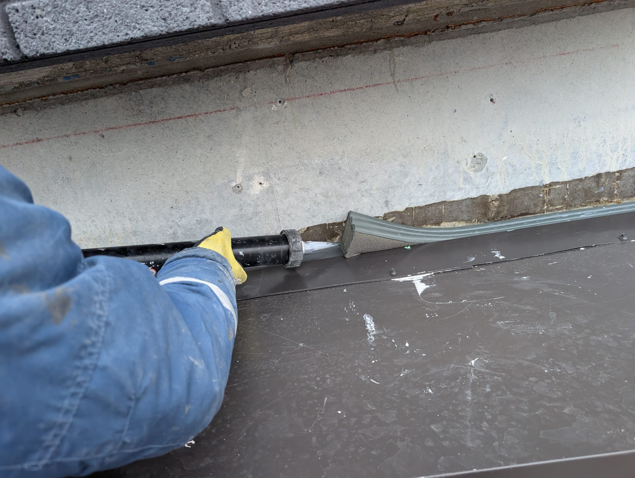 In order to install the Emseal we had to cut the existing flashing and rebuild it to create enough surface for the joint to seal.properly.